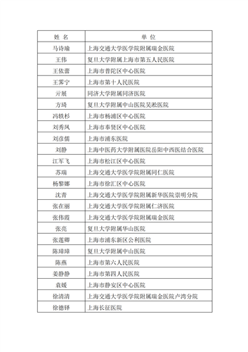 年度上海市优秀临床药师培训基地、带教公示